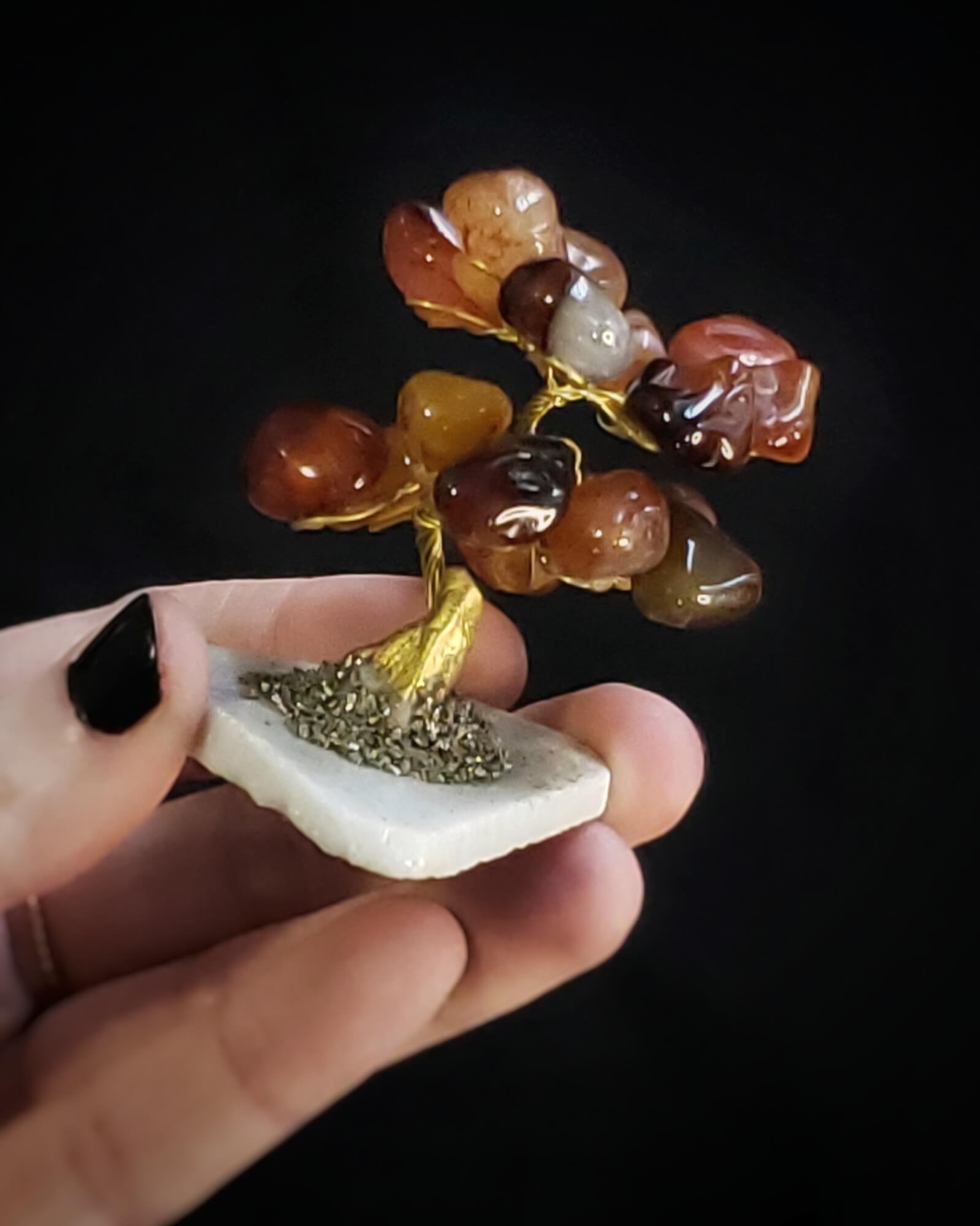 Handmade wire tree sculpture with carnelian stones as leaves.